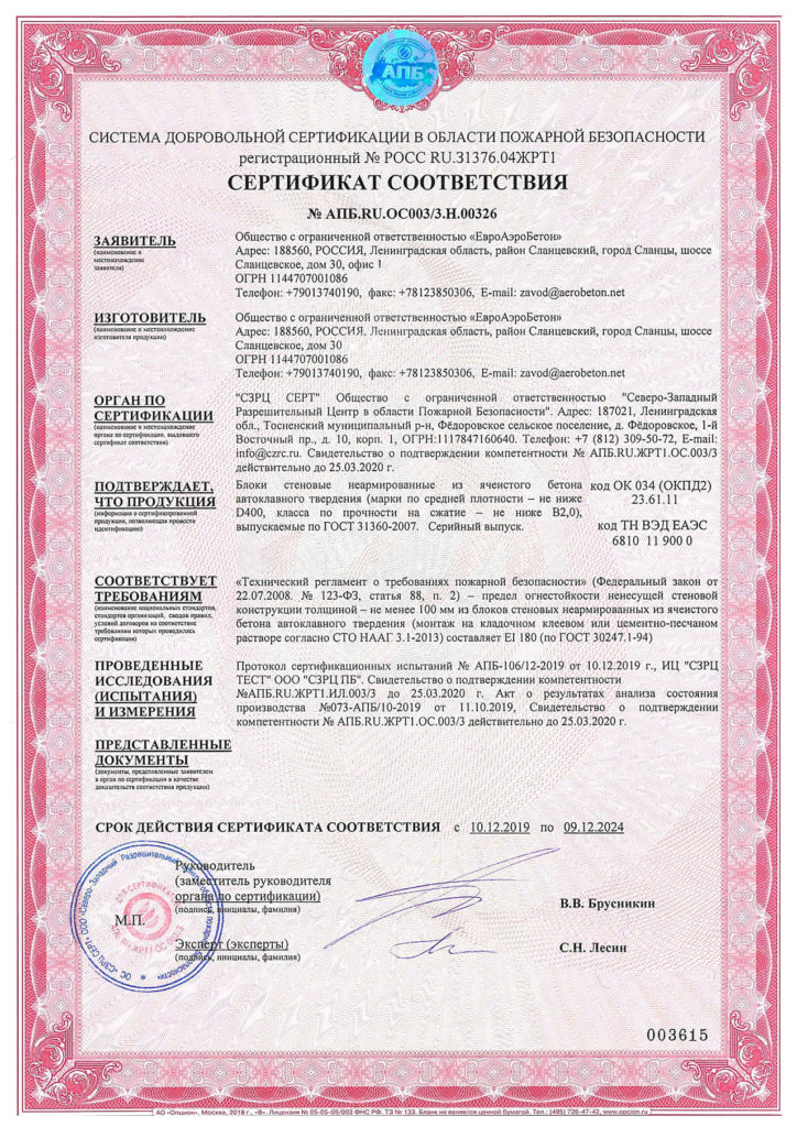 | Производитель | ЕАБ (ЕвроАэроБетон) |